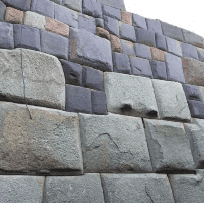 The Incas were stone masons. Their work was perfect….it has lasted anywhere from 500 years to 800 years ….so far…..and still going. Their joints are tight, there is no settlement, and the walls are still plumb. Nobody knows how they did it. Look closely at the one stone on the left….it has 12 sides…and the fit is perfect. There is no mortar…it’s dry stack…held in place by gravity…and bedrock is the wall’s foundation.